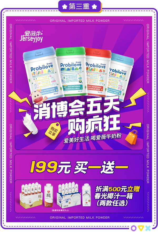 活动内容:在消博会期间,去现场打卡与我们的产品拍照,即可通过公众号后台或添加牛牛【aiweiniu2012】领取一罐800g爱薇牛中老年配方奶粉,仅限前10名!